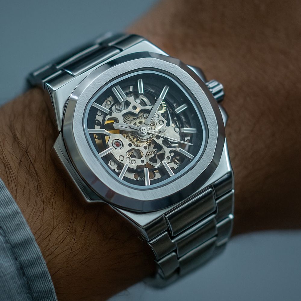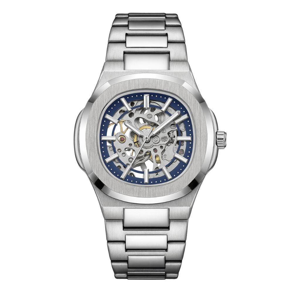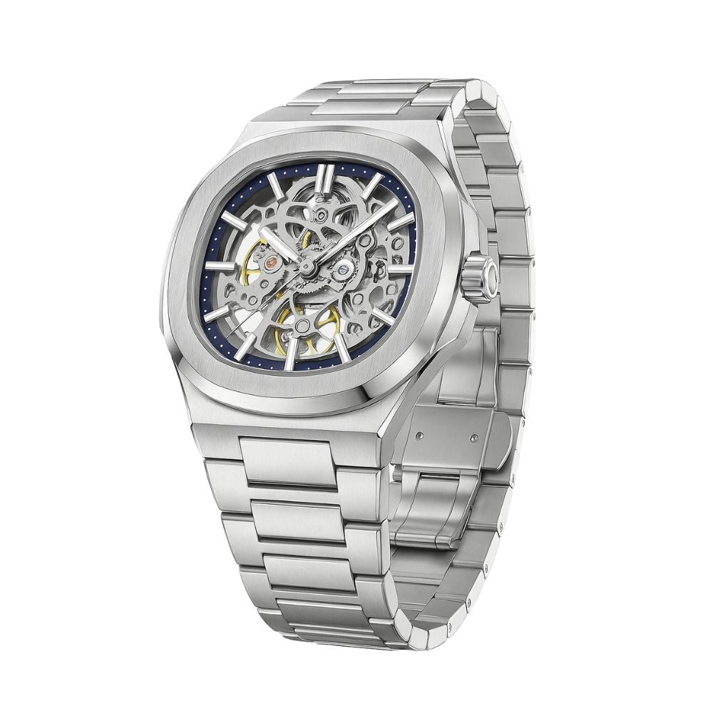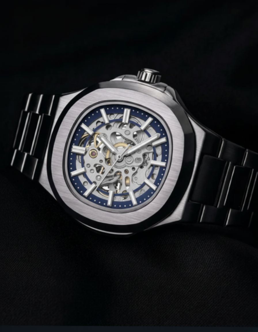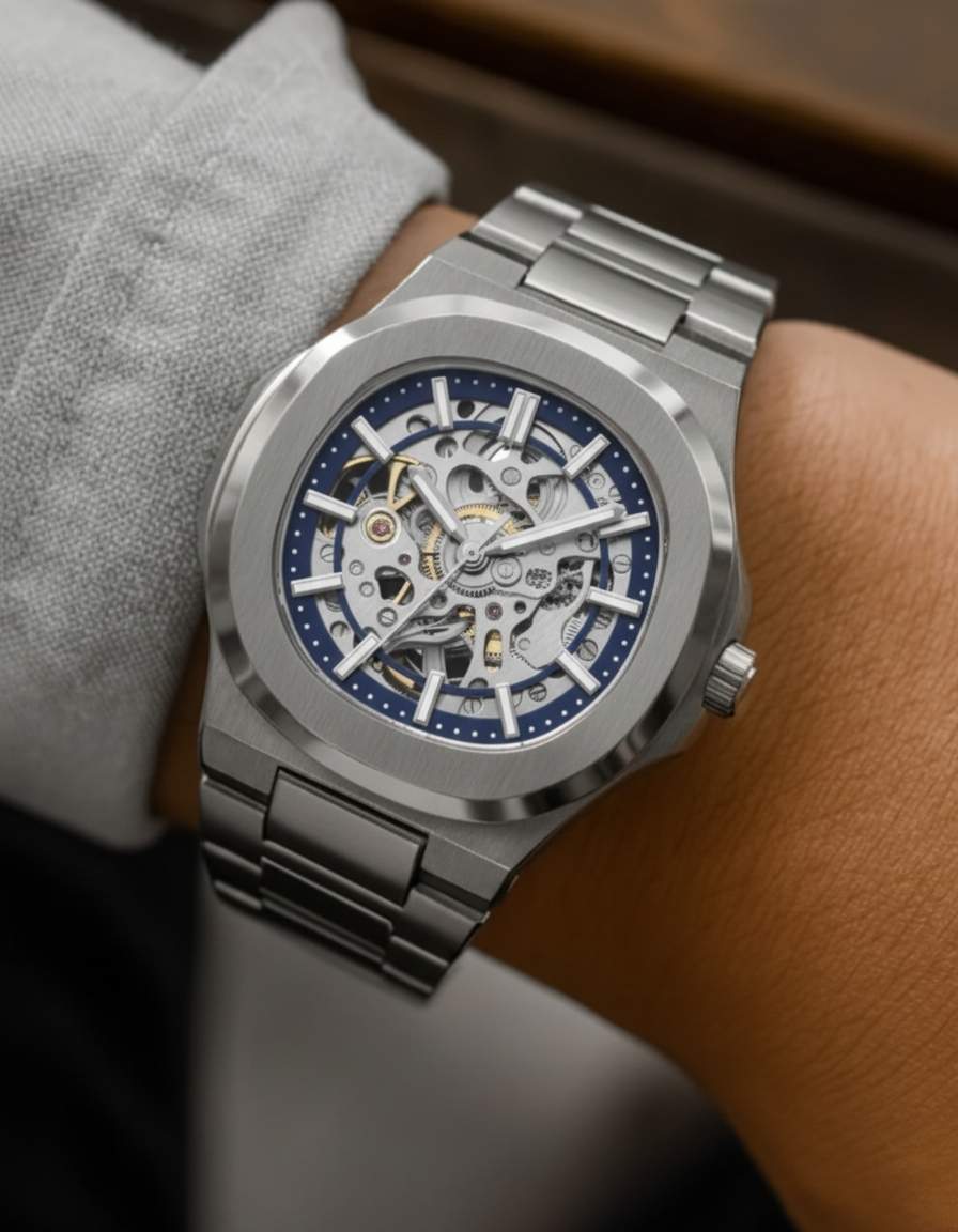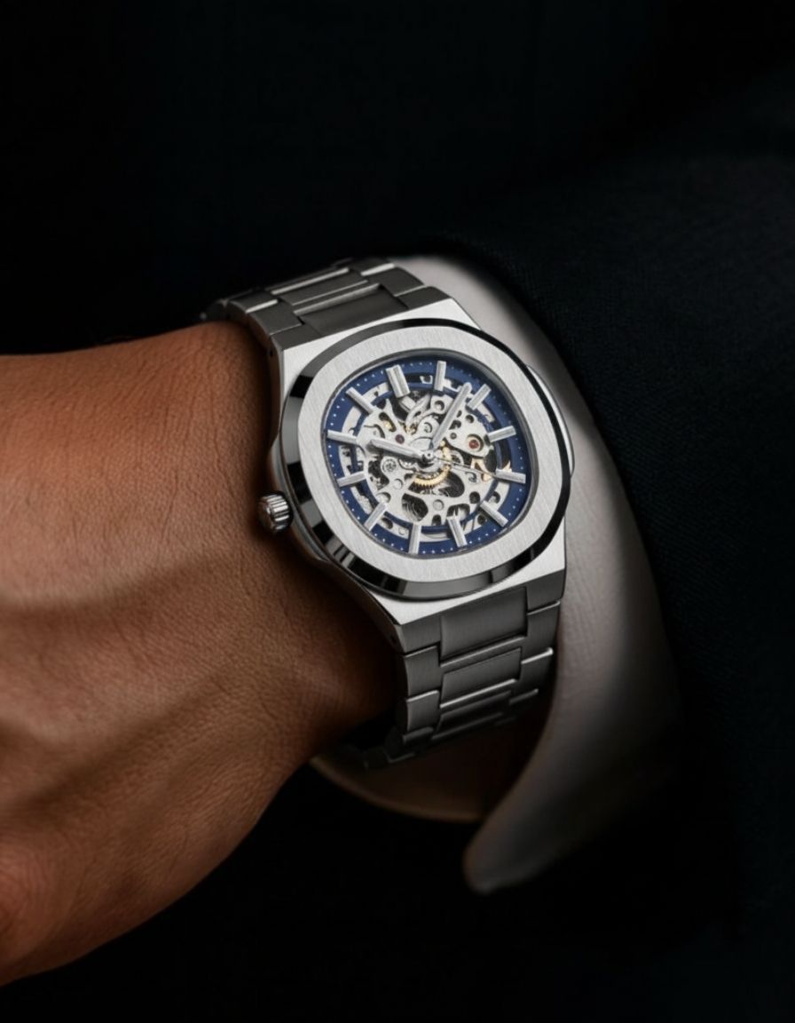 Vanguard Axis Automatic is a luxury men’s watch that combines modern elegance with precision engineering. With its open-heart skeleton dial, sapphire crystal, and stainless steel bracelet, this timepiece reflects sophistication and durability.