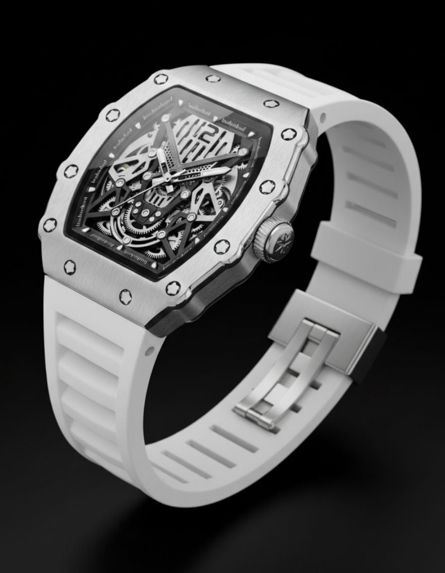 Vanguard Vortex White delivers bold style with its striking orange rubber strap and skeletonized dial. Designed for modern watch enthusiasts, it blends durability, precision, and a dynamic look. A standout timepiece that embodies energy and sophistication.